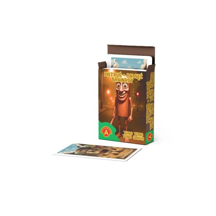 Karty Piotruś Brainrot Alexander Tung Tung Tung Sahur to klasyczna gra w nowej odsłonie, inspirowanej całym uniwersum Brainrot. Znane zasady łączą się tutaj z bohaterami, których dzieci rozpoznają z internetowych trendów, dzięki czemu zwykła talia kart zamienia się w dużo bardziej atrakcyjną zabawę. Gra sprawdza się zarówno jako Piotruś, jak i prosta gra pamięciowa, dlatego daje więcej niż jeden sposób na wspólną rozgrywkę. Krótkie partie pomagają ćwiczyć pamięć, koncentrację i spostrzegawczość, a przy tym utrzymują lekkie, zabawne tempo. To propozycja dla dzieci, które lubią karcianki, szybkie zasady i motywy inspirowane viralowymi bohaterami. Karty dobrze sprawdzą się w domu, na wyjazdach i podczas wspólnej zabawy z rodziną lub znajomymi. Najważniejsze cechy: - gra Alexander z serii Brainrot - motyw z postacią Tung Tung Tung Sahur - wariant Piotruś i pamięć - szybka rozgrywka i proste zasady - rozwija pamięć, koncentrację i refleks